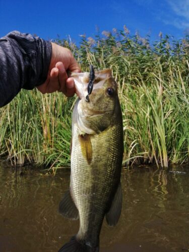 葦の際に スティーズホグ2.2インチのダウンショット を落とし込むと、ドンッ!と40UPが食ってきました!