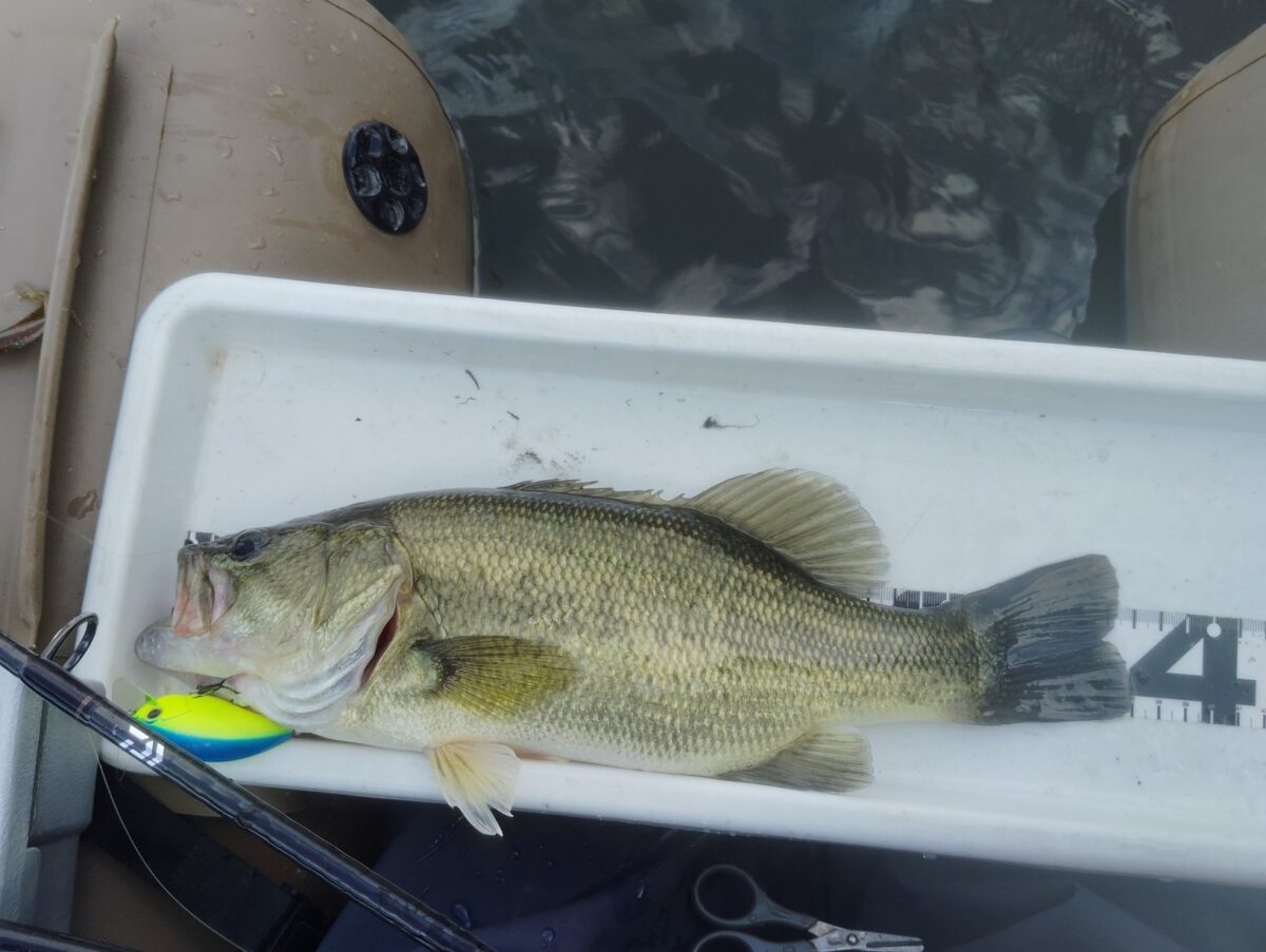 私は今週、ラバージグで27cmのバスをキャッチ。