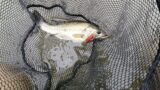 と考えて、同じコースを戻って冷たい場所が出てきたところでキャストすると、すぐに反応がありました!結局Uターンして同じ場所で3匹追加しました。