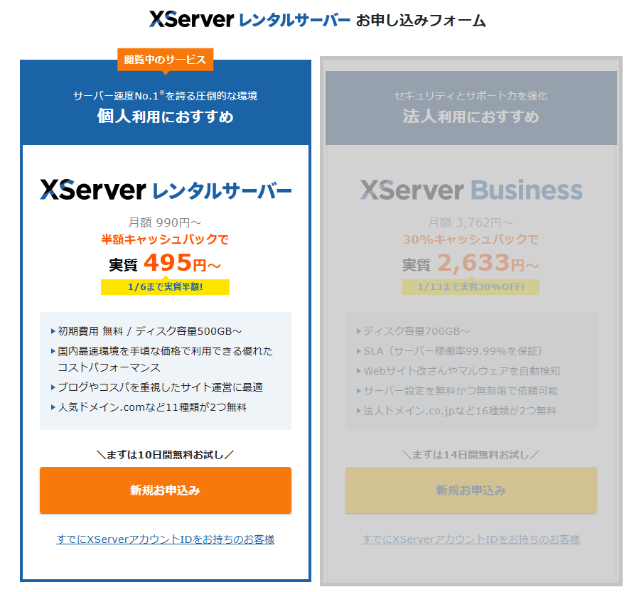 初心者は特に、サーバーとドメインを同時に取得できる XServer が一番わかりやすいです。
